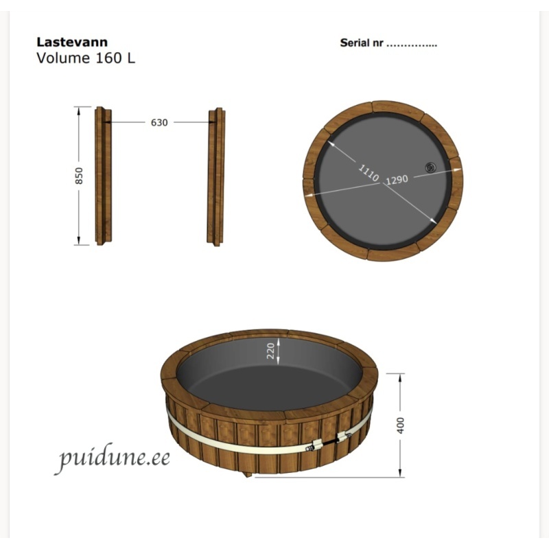 Basseini mõõdud: 1110 X 220 mm (160 liitrit)