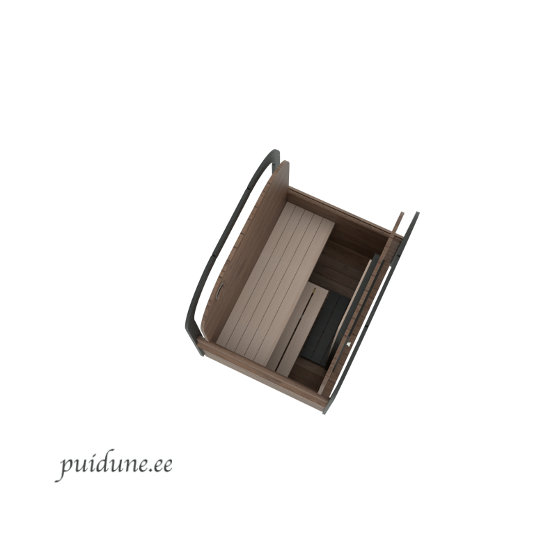 Sauna tagaseinas on kahekordne lava, mis võimaldab mugavalt istuda, jalgu sirutada ja nautida lõõgastavaid hetki. Disain on läbimõeldud, et pakkuda maksimaalset mugavust väikese jalajälje juures.