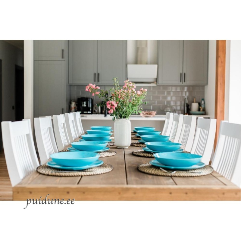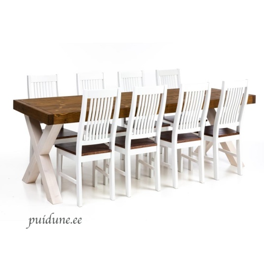 Transporditakse laud kahes osas ja toolid 2 kaupa kastis (6 pakki)